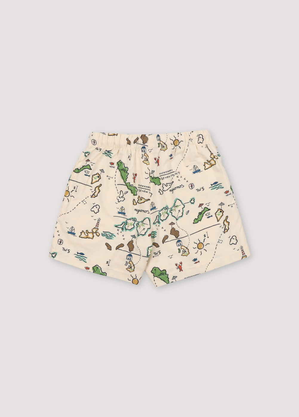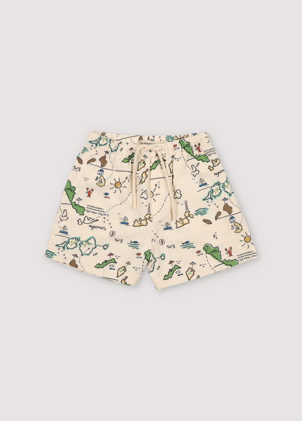 The Arkoi Bermuda captures the essence of our collection with its unique island map print, designed in 100% cotton for comfort and style. Featuring an elastic waistband and an adjustable drawstring, these bermuda shorts offer a perfect fit for any adventure.